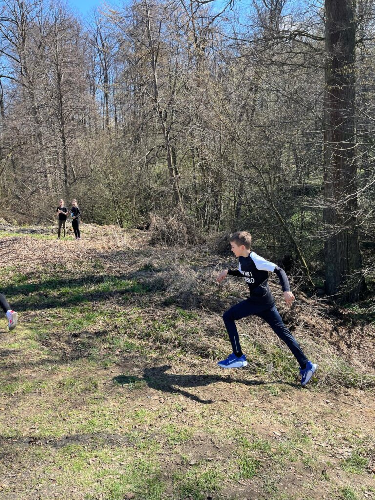 Uczniowie rywalizowali między sobą do końca trasy biegowej pomimo, że nie należała do łatwych pokazując swoją siłę i ducha walki.