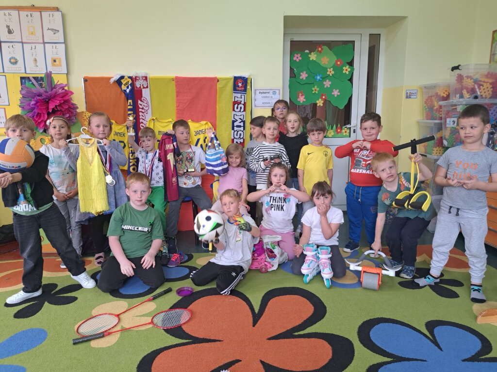 W drugiej połowie maja b.r. w oddziale „0” odbył się dzień, w którym dzieci dzieliły się swoimi pasjami sportowymi pod hasłem „Nasze pasje sportowe”. Oprócz słownych wiadomości, nie zabrakło także ciekawych gadżetów. Mali uczniowie bardzo chętnie opowiadali o przygodach związanych z piłką nożną, siatkówką, badmintonem, pływaniem, jazdą na łyżworolkach, tańcem, ćwiczeniami na różnych ciekawych przyrządach. Każdy mógł pooglądać zdobyte medale, puchary, skorzystać z dostępnych przedmiotów. Dzięki temu dniu mogliśmy bliżej poznać pasje i talenty zerówkowiczów oraz poznać aktywne sposoby ich spędzania wolnego czasu. Jednocześnie zakończyliśmy innowację pedagogiczną „Sport to dobra sprawa jest ruch i wspólna zabawa” poprzez ankietę, w której zamieszczone były pytania dotyczące działań z okresu w.w. innowacji. Cieszy nas ogromnie fakt z dużej aktywności, zadowolenia oraz wzrostem zainteresowania sportem wśród dzieci. Dziękujemy rodzicom za przygotowanie swoich dzieci na ten dzień i zapraszamy do oglądnięcia krótkiej relacji.