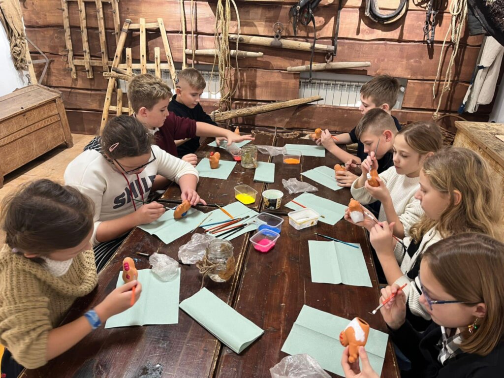 Pierwszym punktem programu była wizyta w teatrze, gdzie obejrzeliśmy poruszającą inscenizację „Opowieści wigilijnej”. Spektakl zachwycił nas nie tylko grą aktorską, lecz także nastrojową scenografią i piękną muzyką. Historia Ebenezera Scrooge’a, pełna refleksji i świątecznego przesłania, na długo pozostanie w naszej pamięci. Po przedstawieniu udaliśmy się do Muzeum Etnograficznego, które okazało się prawdziwą skarbnicą wiedzy o kulturze i tradycjach regionu. Z zainteresowaniem oglądaliśmy zbiory związane z dawnymi strojami, rzemiosłem oraz życiem codziennym mieszkańców Małopolski. Szczególną uwagę przyciągnęły barwne eksponaty i ciekawostki związane z obyczajami świątecznymi. Wykonaliśmy też gliniane figurki. Wycieczka była nie tylko okazją do integracji, ale również inspirującą lekcją historii i kultury.